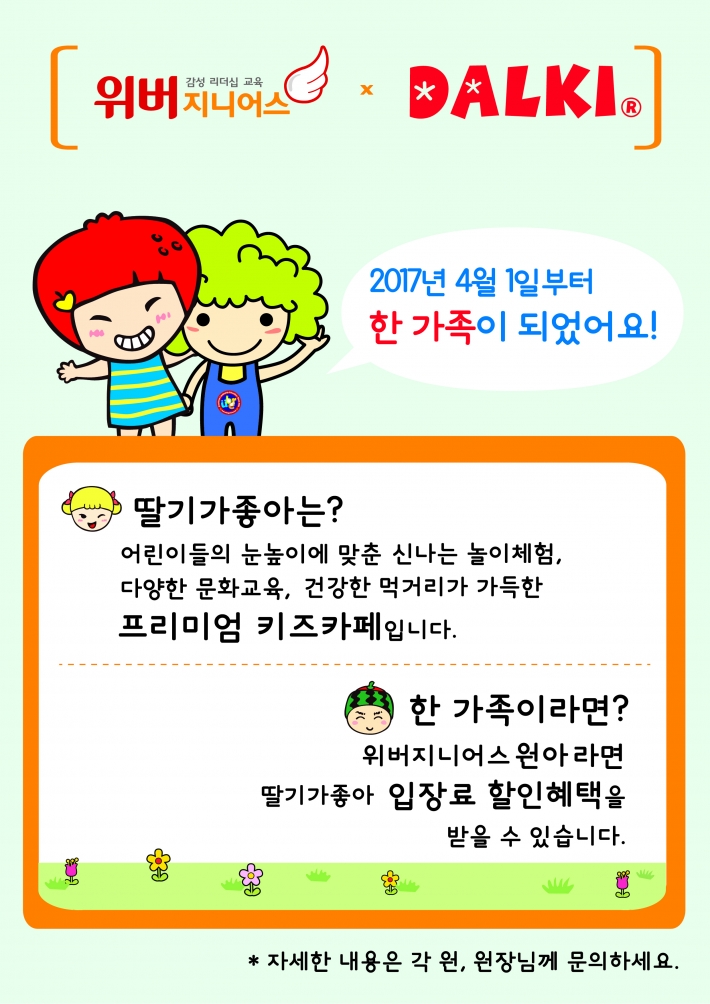 위버지니어스와 프리미엄 키즈카페 "딸기가 좋아" 가 한 가족이되었습니다^^