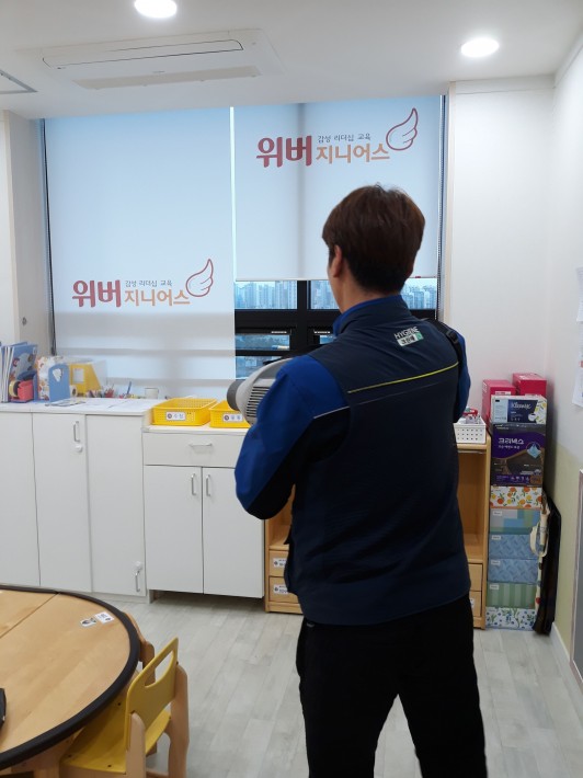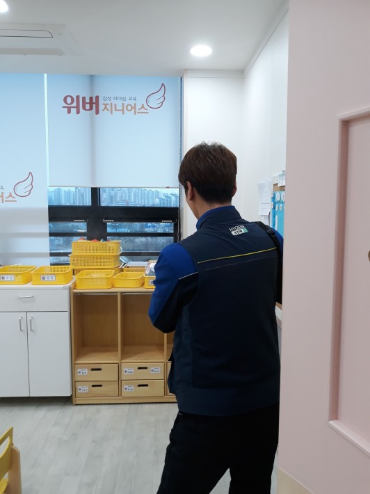 오늘은 위버지니어스 전체 소독이 있는날입니다.책상밑,의자,바닥,장난감 구석구석 안보이는곳까지~우리 위버 친구들이 생활하는 모든곳을 말끔하게 소독했습니다♡