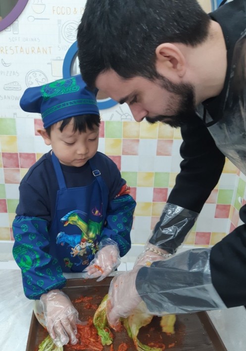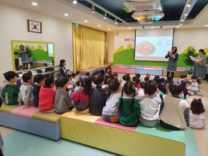 위버에서 김장 체험을 하였어요. 김치의 유래에 대해 알아보고 김치의 종류, 필요한 재료등 김치에 관한 모든것을 알아보는 유익한 시간이였답니다. 김치를 직접 담가보는 체험을 통해 우리나라 전통을 다시 한번 느껴보는 소중한 시간이였습니다. 오늘 저녁은 아이들이 담근 김치로 저녁상을 차려 보는거 어떠세요? ♡