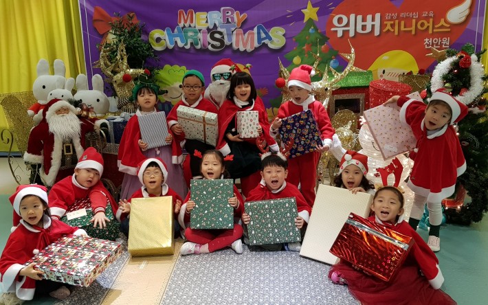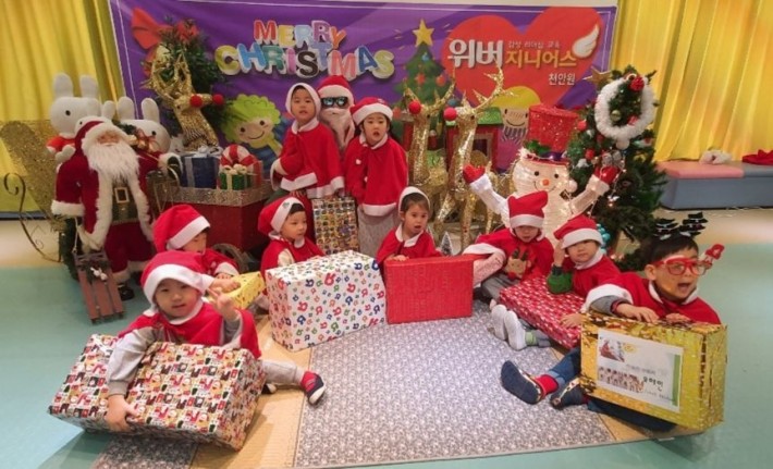 오늘은 기다리고 기다리던 산타 할아버지 오신 날~ 산타 할아버지께 선물 받고 행복해 하는 우리 위버 친구들이 너무나 사랑스럽습니다. 포트락 파티 후, 재밌는 마술쇼를 보며 즐겁고 신난 크리스마스 파티를 보냈답니다. 위버 가족 여러분~ 행복하고 즐거운 성탄절 보내세요. 메리크리스마스~♡