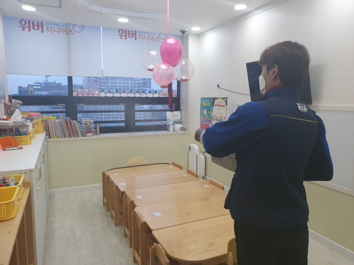 위버지니어스 소독을 하였어요. 철저한 위생관리에 중점을 두고 있는 요즘, 더욱더 세심하게 구석구석 소독을 하였어요. 우리 아이들이 안심하고 지낼 수 있도록 전 교직원들이 대청소도 하며 건강하게 활동하는 아이들의 모습도 상상해보았답니다. 위버지니어스 천안원에서는 청결하고 안전한 아이들의 행복한 공간이 되도록 최선을 다하고 있습니다~^^