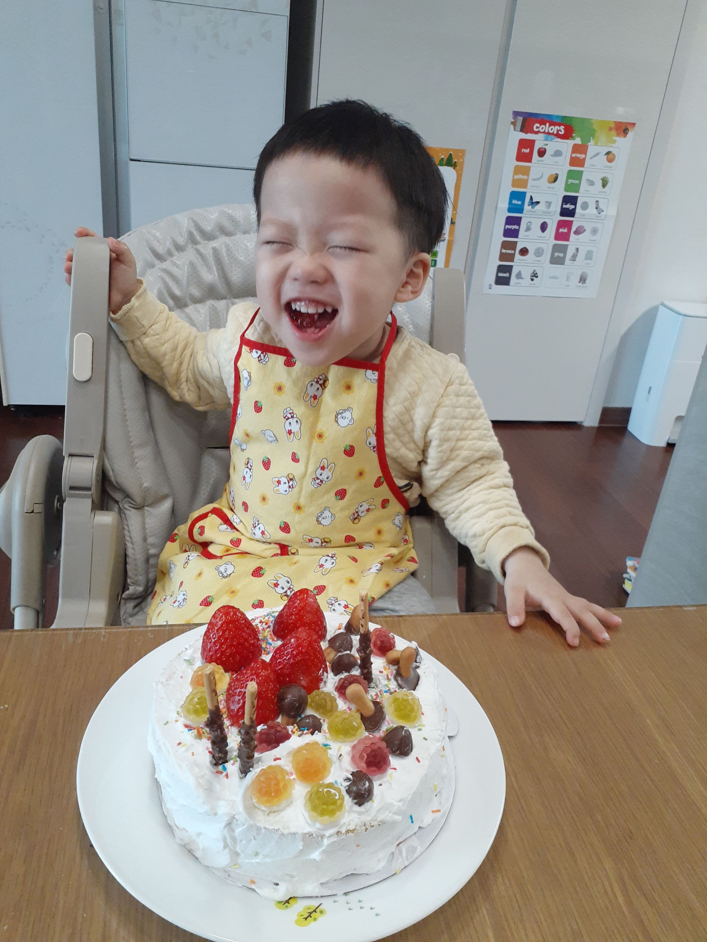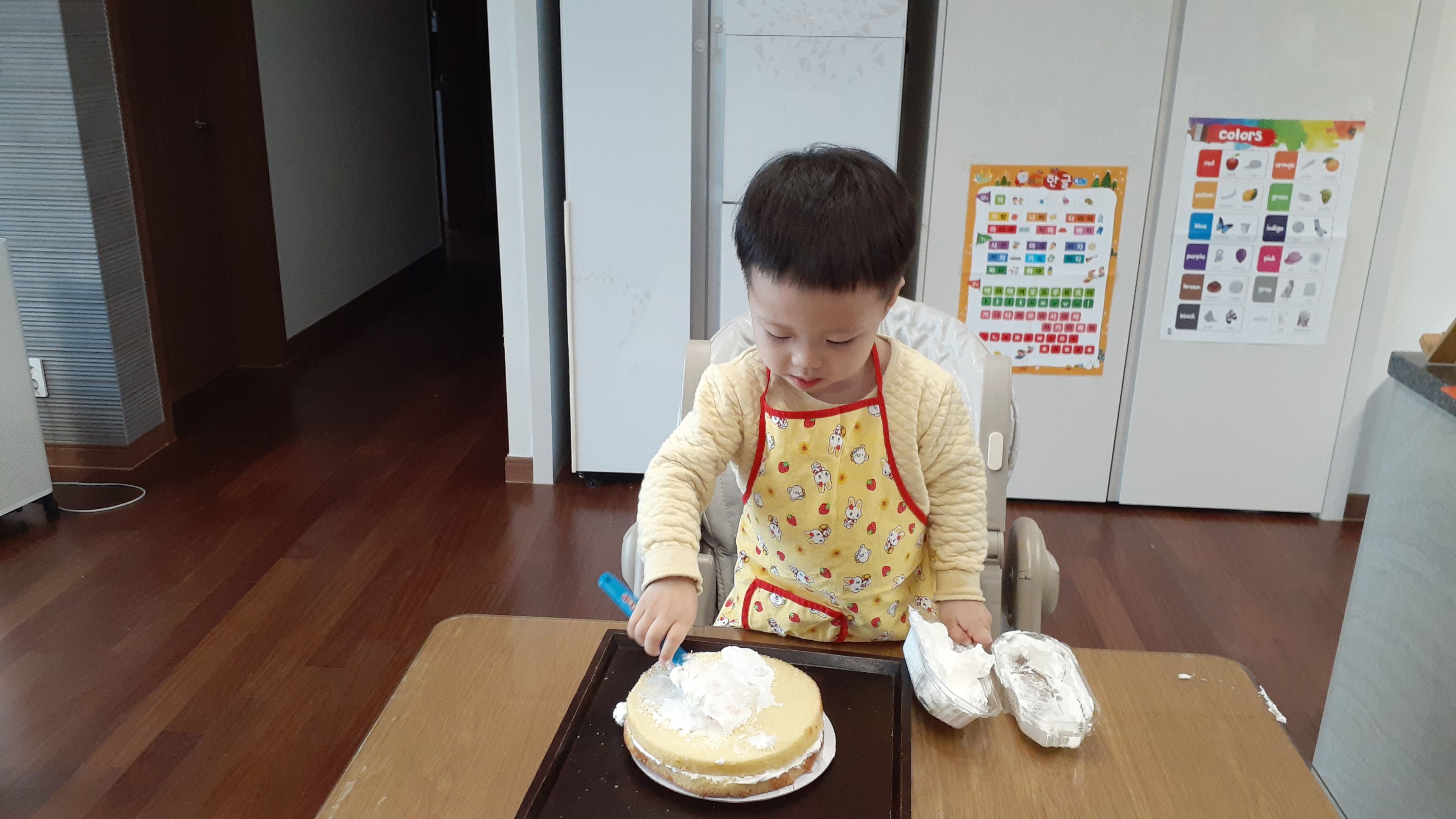 동준이가 많이 지루해보여서, 좋아하는 요리시간을 가졌습니다. 케잌을 만드는 영상을 보고, 케잌시트3단에 크림을 꼼꼼하게 바르는 동준이 모습이 매우 진지해보였습니다. 물론 여러가지 과자와 젤리로 장식하는 시간이 제일 신나보였습니다. ^^♡