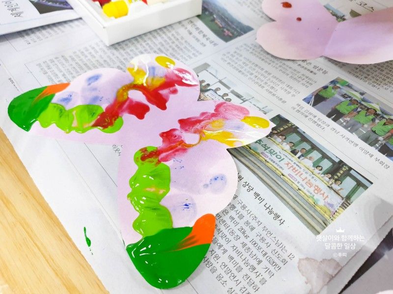 미술놀이 주제는 "데칼코마니로 봄의나라 표현하기"로 봄에 관련된 이미지로 데칼코마니를 만들어 보는거에요^^