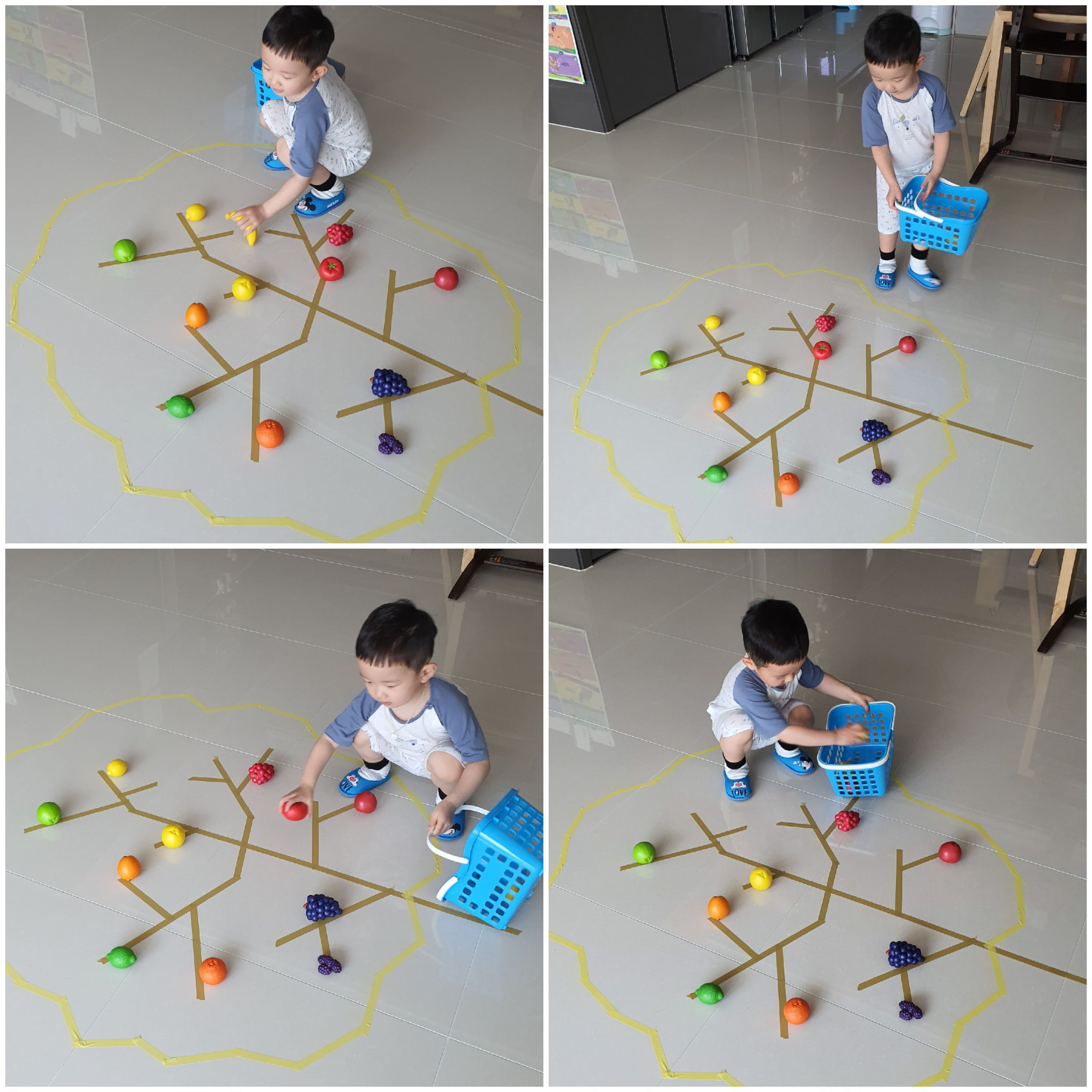 규민이도 나무속에 들어가고싶다며 들어가서 과일을 따보아요