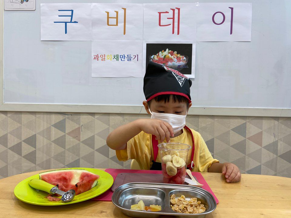 무더운여름 시원하게 수박등 여러가지 과일을 넣어 위버친구들과 과일화채를 만들어 먹었어요 ~이렇게 위버교사들은 위버데이를 위해 많이 의논하고 준비를 하고 있답니다~