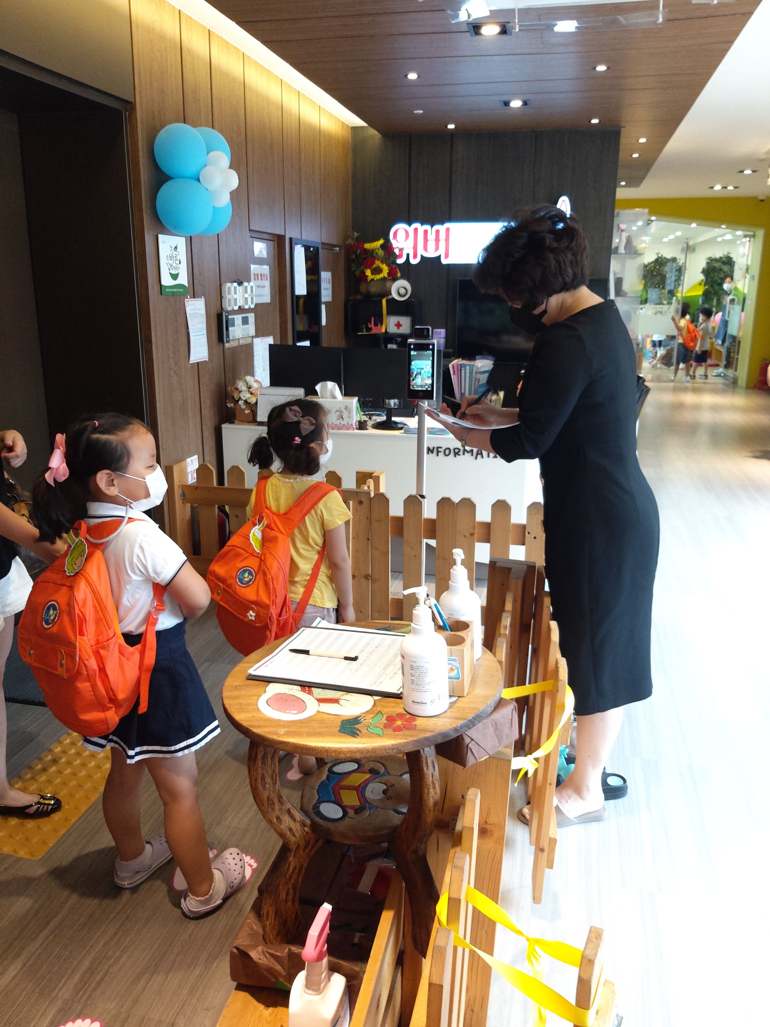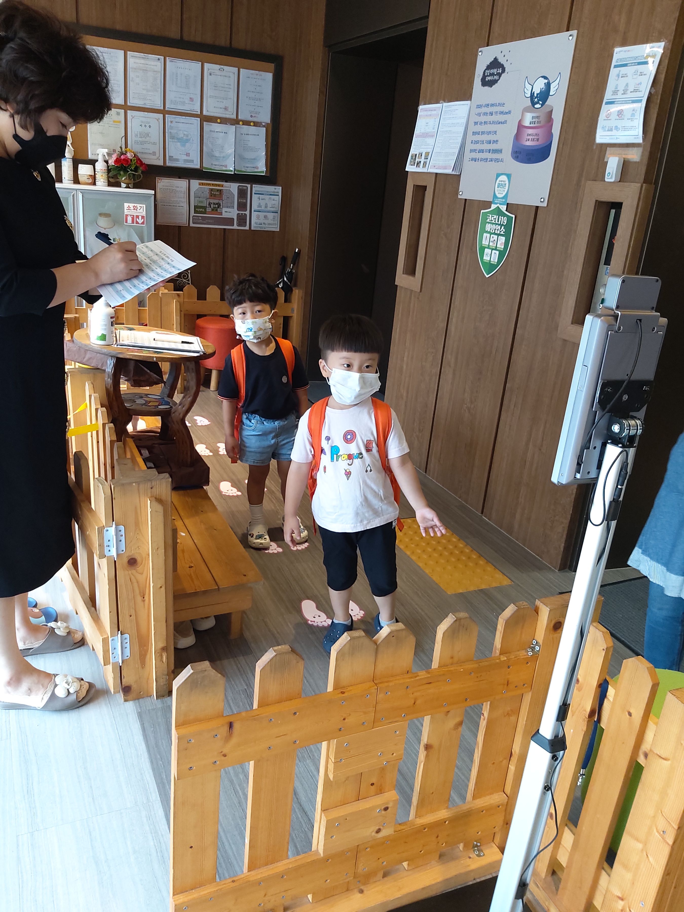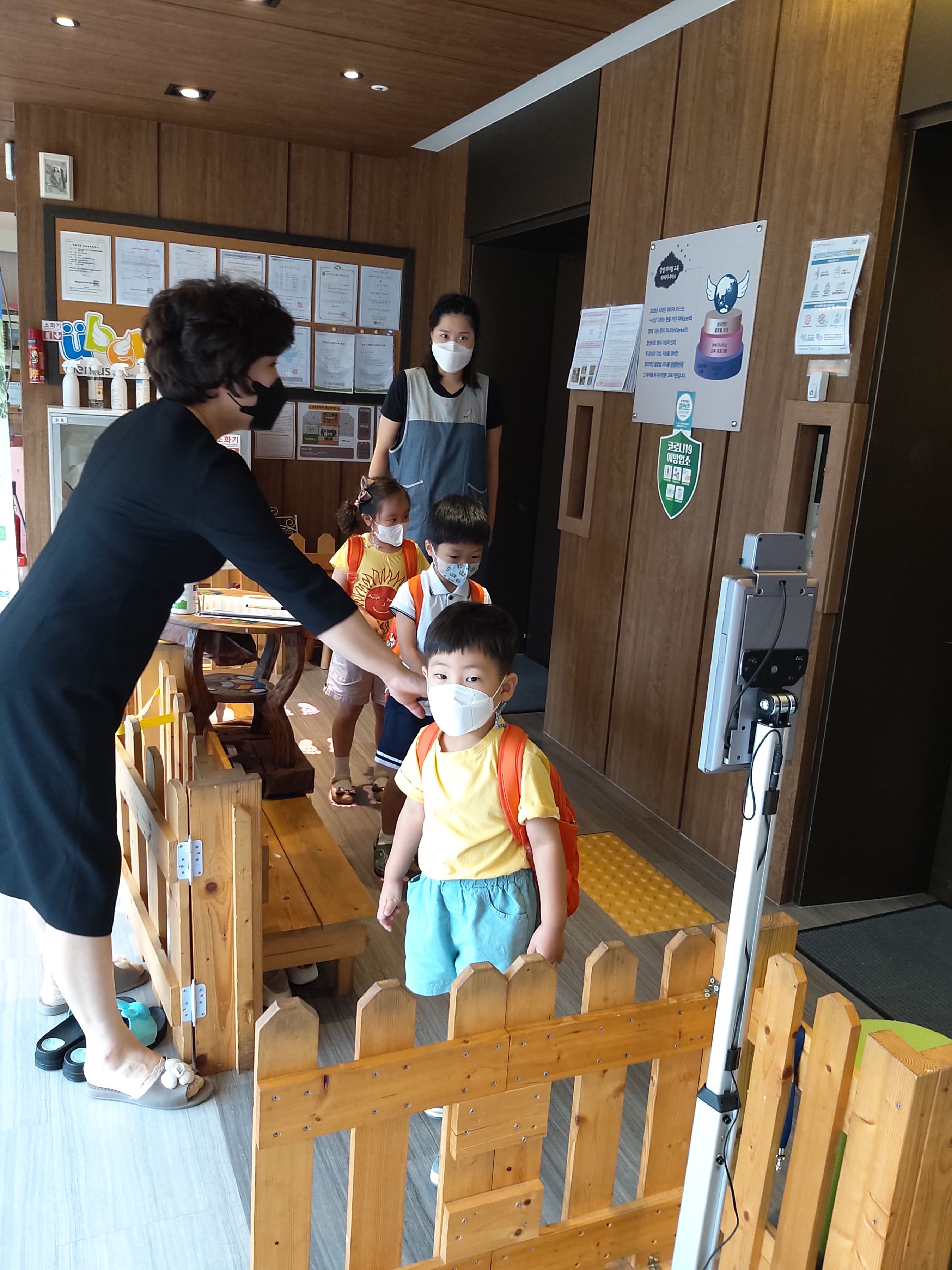 아이들과 부모님들을 매일매일 체크하기위해 로비에 열화상감지기를 설치하였어요.아침마다 원장님께서 나오셔서 직접 체크해 주신답니다.원에 방문하시는 학부모들님들이 계시면 열화상감지기에 꼭 체크부탁드려요.