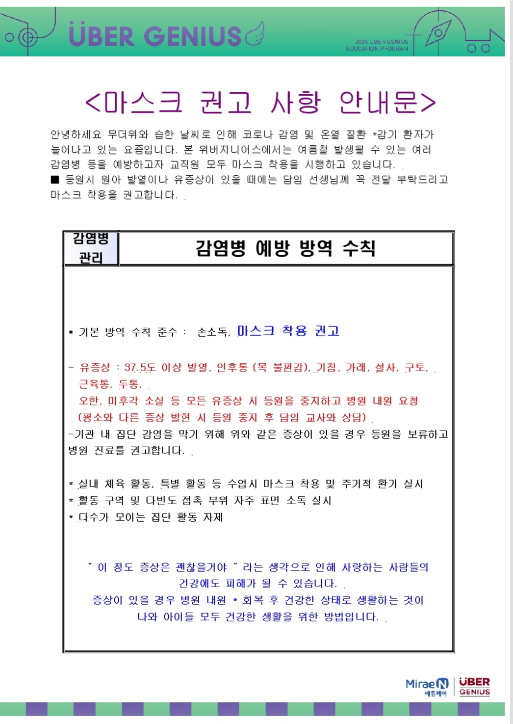 감염병 예방 수칙 안내입니다
