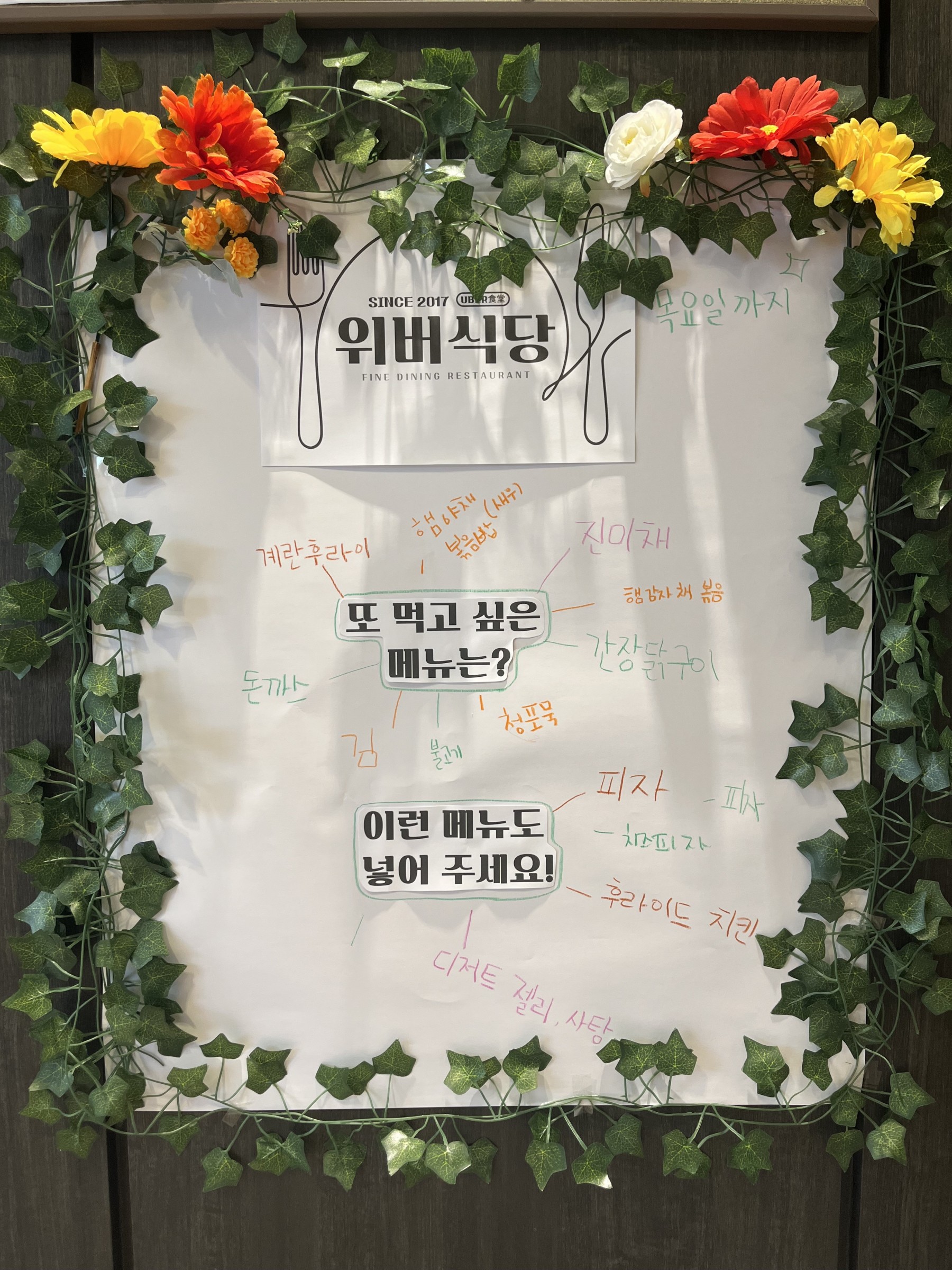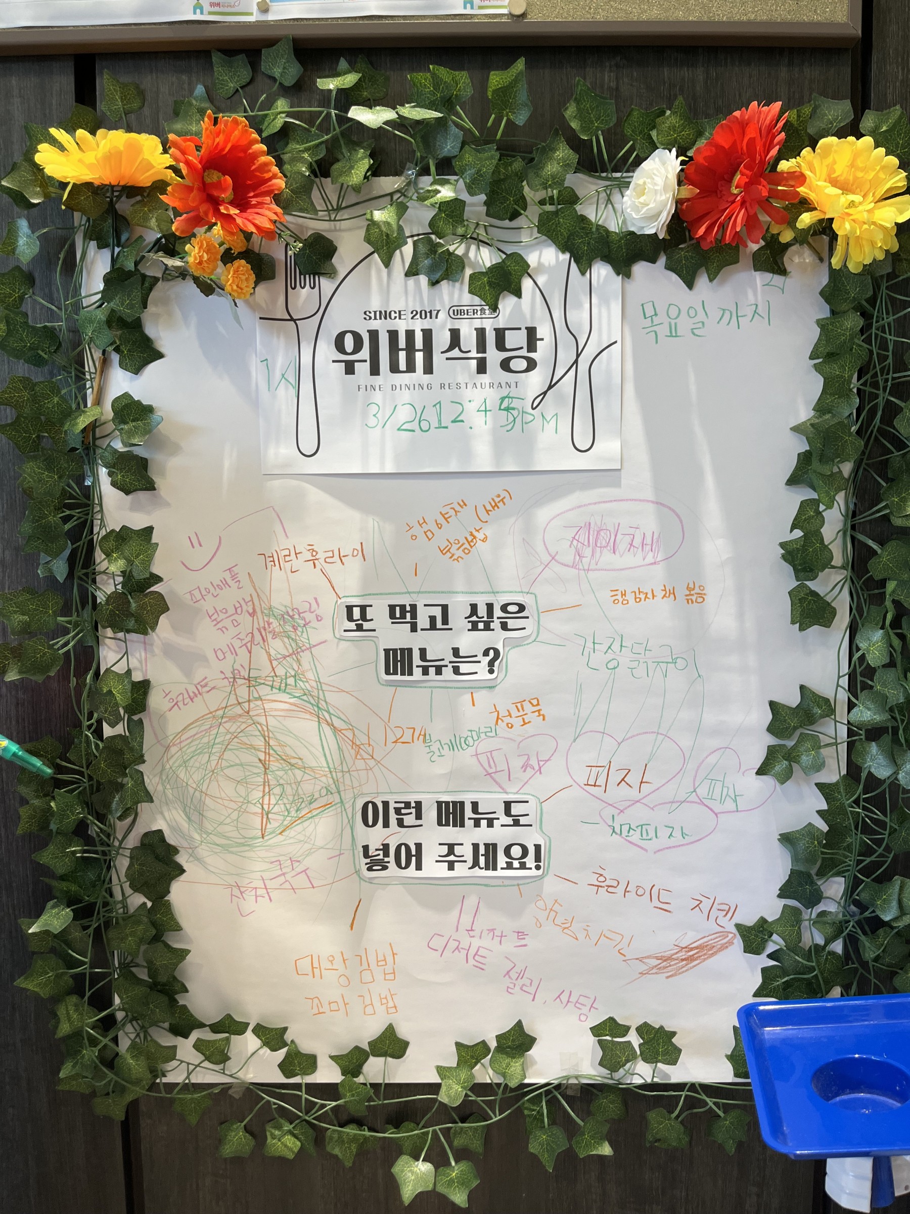 학부모님, 선생님 그리고 아이들에게 1분기 위버식당 메뉴 추천을 받고 있습니다.