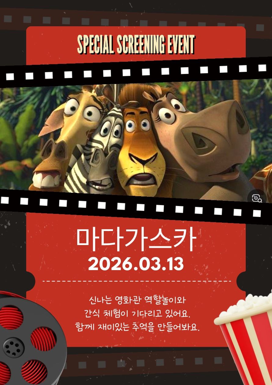 이번에 함께 볼 영화는 전체연령가 애니메이션 <마다가스카> 입니다.